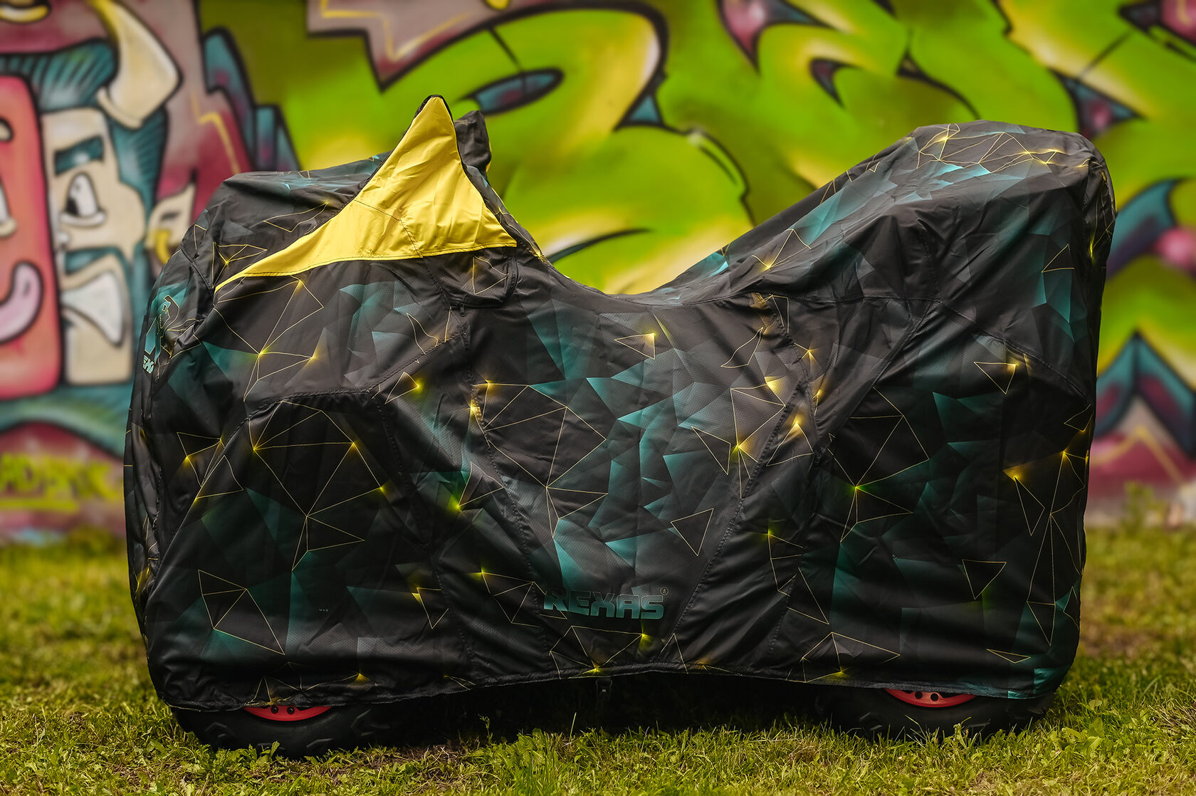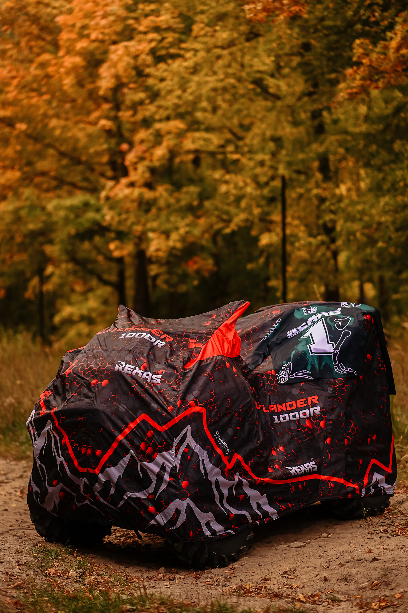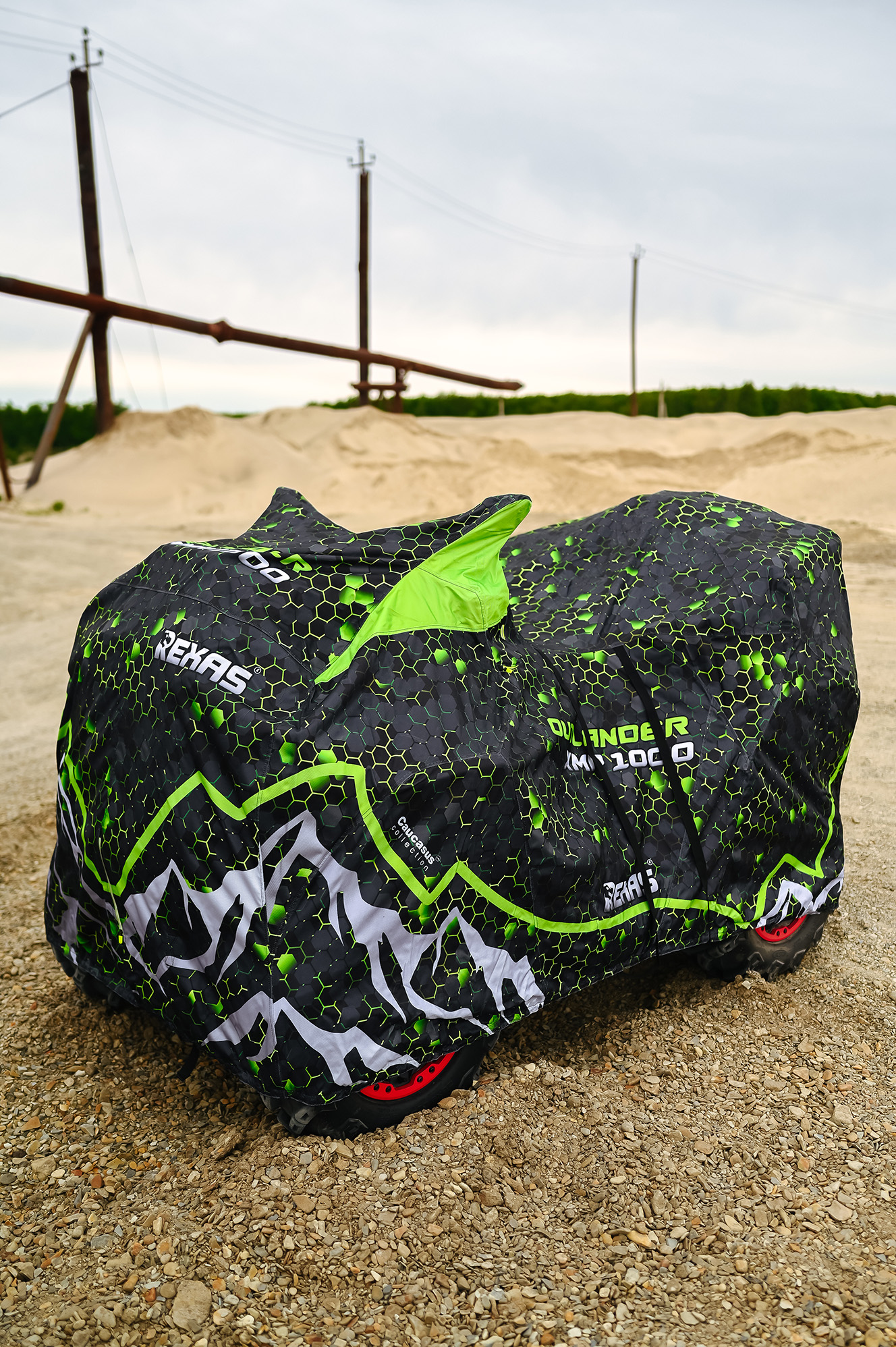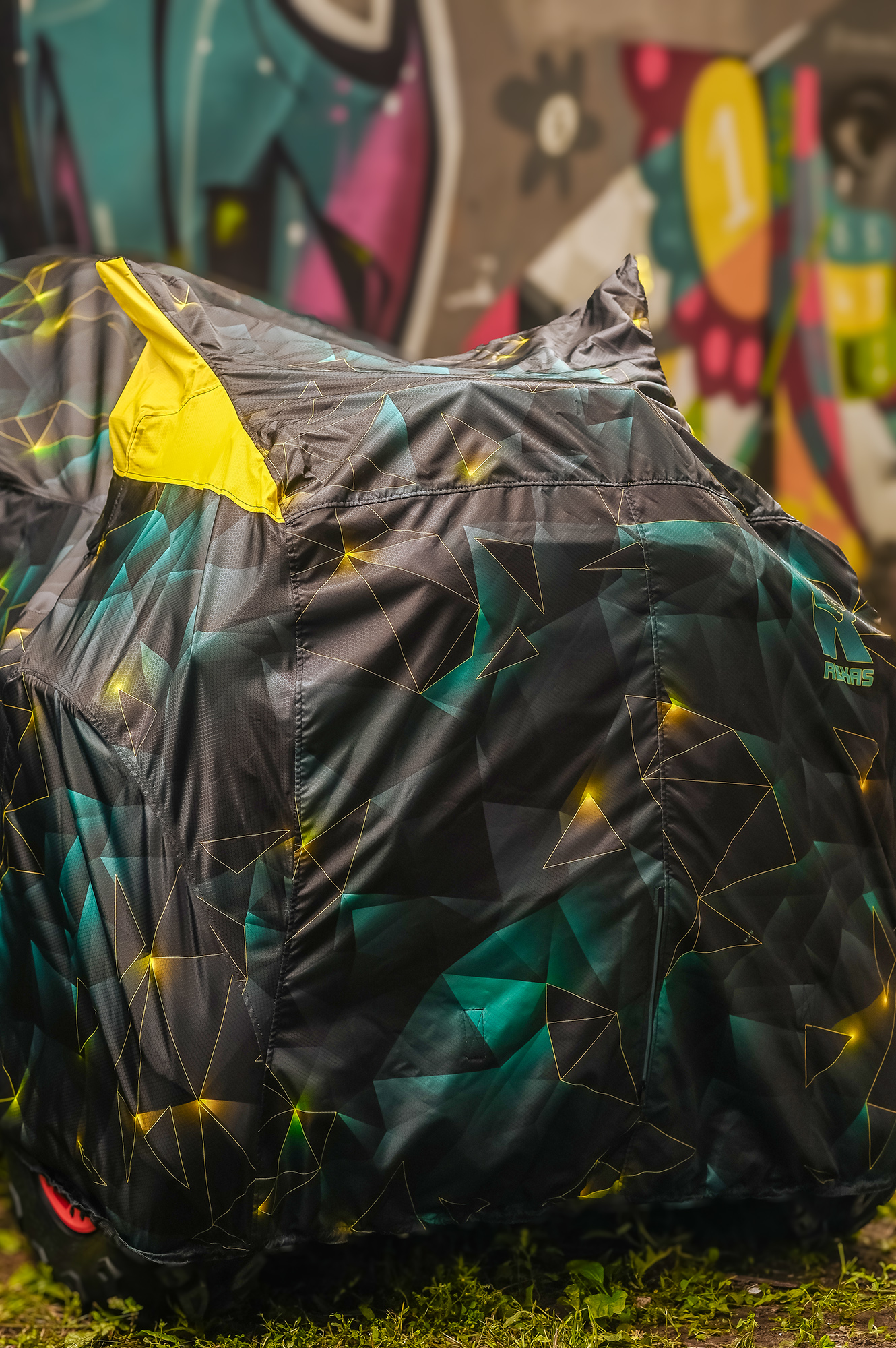 Чехол производится из технологичной ткани Spyder RipStop с пропиткой устойчивостью до 3000 мм водного столба, швы загерметизированы и позволяют хранить квадроцикл в мах защищенности от погодных факторов. Чехол является стояночным и подходит для перевозок на небольшие расстояния.