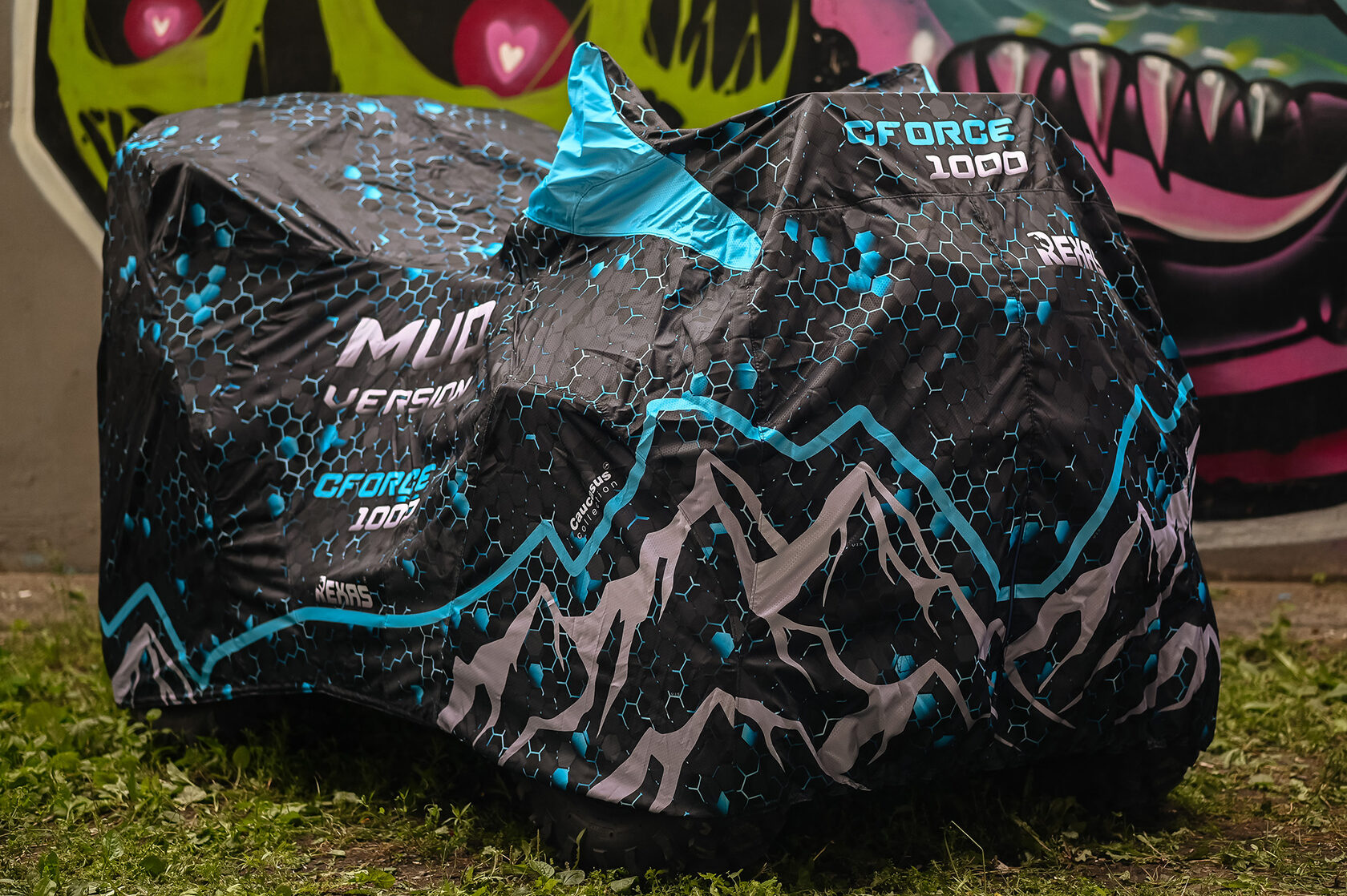 Эксклюзивный чехол из коллекции "Кавказ" в фирменном голубом цвете под новейший Cforce Mud Version 2025! Чехол отлично сидит как со средним, так и с высоким положением выноса радиатора! Отлично сидит даже с большим кофром!