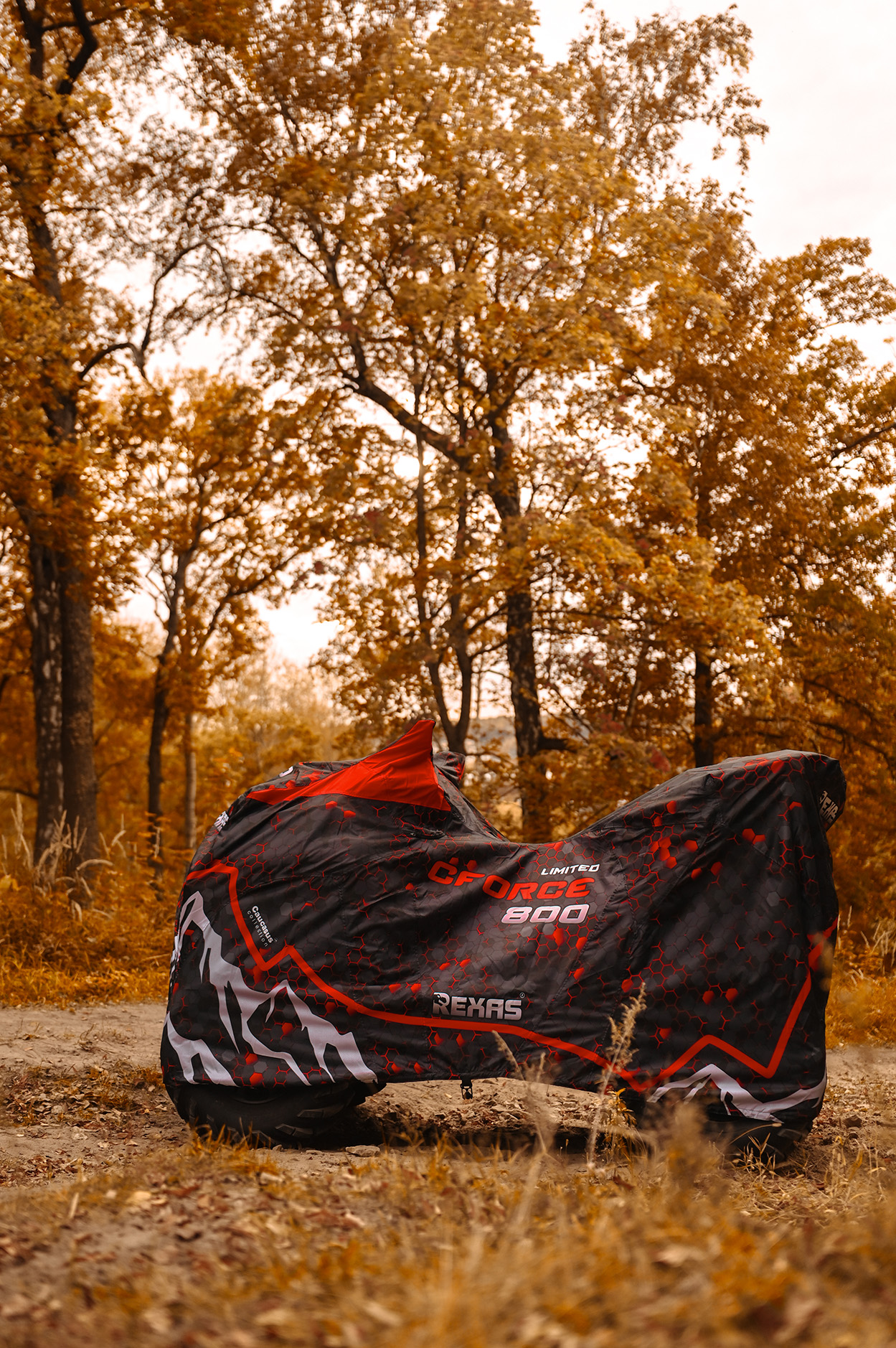 Эксклюзивный чехол из коллекции "Кавказ" в фирменном красном цвете под новейший Cforce Mud Version 2025! Чехол отлично сидит как со средним, так и с высоким положением выноса радиатора! Отлично сидит даже с большим кофром!
