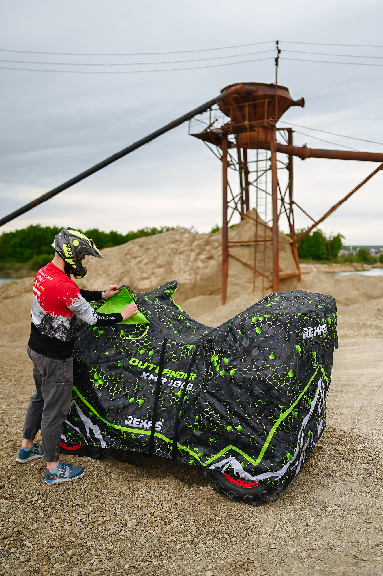 Из интересных опций: 1. Возможно дополнительно нанесение имени, никнейма или названия квадроклуба. Нанесение - не наклейка сверху, а заводская печать. Можно менять надписи на Outlander 1000, 850 и добавить надписи XMR, XTP, MAX. 2. Замки для доступа к коробке передач, ключу зажигания и лебедке спереди (бывает очень полезно для оперативного доступа) 3. Конечно же крепление на стропу через днище, чтобы даже при сильном ветре на стоянке чехол надежно держался. 4. Крепления чехла спереди и сзади в 4х точках!