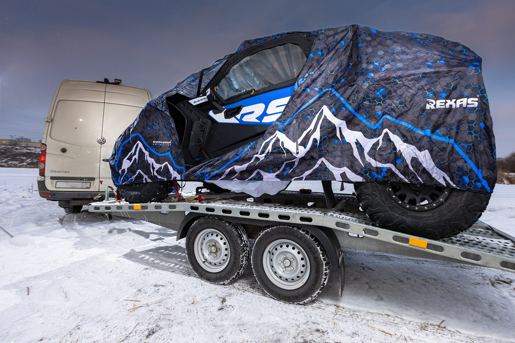 Чехол производится из технологичной ткани Spyder RipStop с пропиткой устойчивостью до 3000 мм водного столба, кроится на лазерном станке, швы загерметизированы и позволяют хранить квадроцикл в мах защищенности от погодных факторов.